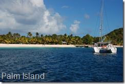 From Saline we went to Palm Island for lunch. This is one of several privately owned exclusive resort islands in this area with hideaway villas costing around US$2000 a night. We swam ashore and had a wander on the deserted beach – obviously times are tough for high fliers. After checking out of Union Island (and the Grenadines) we headed to Petit St Vincent – another exclusive expensive resort with no phones and no internet. If you want room service you hoist a flag!